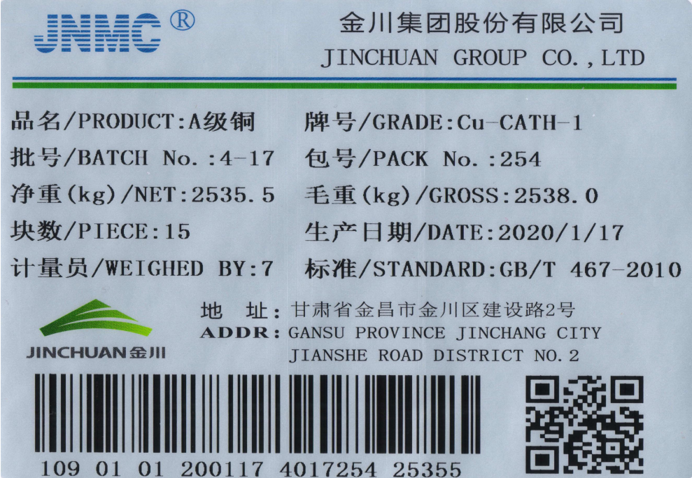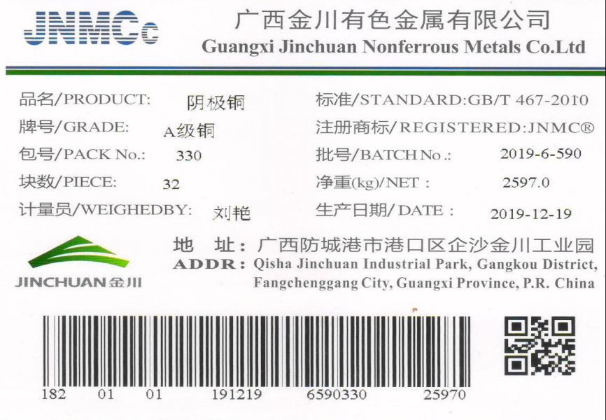 11月11日,上海期貨交易所(下稱上期所)子公司上海國際能源交易中心(下稱上期能源)發(fā)布了國際銅期貨合約及相關(guān)規(guī)則,根據(jù)《上海國際能源交易中心交割細(xì)則》《上海國際能源交易中心陰極銅期貨合約》和《國際銅交割商品注冊(cè)管理規(guī)定》等有關(guān)規(guī)定,金川銅【品牌:JNMC-A級(jí)銅(傳統(tǒng)電解),規(guī)格:1030*1000*15】和廣西銅【品牌:JNMC(防城港/永久陰極-K)A級(jí)銅(永久陰極-K),規(guī)格:1030*1010*10】成為首批國際銅期貨可交割品牌,更好的增加了金川集團(tuán)銅產(chǎn)品的貿(mào)易渠道及轉(zhuǎn)口業(yè)務(wù)、進(jìn)口業(yè)務(wù)的便利性和安全性。