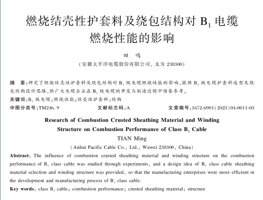 燃燒結殼性護套料及繞包結構對B1電纜燃燒性能的影響